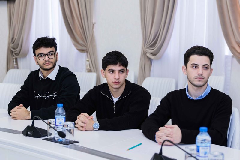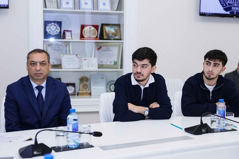 Görüşün sonunda rektor Ədalət Muradov tələbələri Fəxri Fərmanla təltif edib.