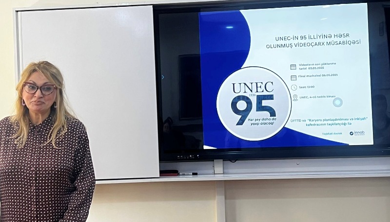 Ümumi fənlərin tədrisinin təşkili departamenti (ÜFTTD) və “Karyera planlaması və inkişafı” kafedrasının birgə təşkilatçılığı ilə Azərbaycan Dövlət İqtisad Universitetinin (UNEC) 95 illik yubileyi münasibətilə tələbələr arasında “UNEC- 5” mövzusunda videoçarx müsabiqəsi keçirilib.