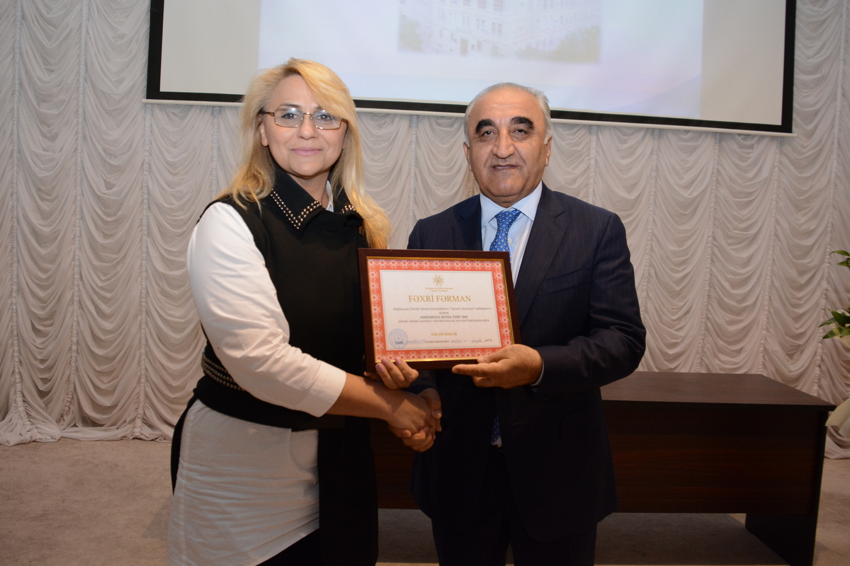 Azərbaycan Respublikası Prezidentinin 24 sentyabr 2020-ci il tarixli Sərəncamı ilə Azərbaycan Dövlət İqtisad Universitetinin 90 illiyi münasibətilə və Azərbaycanda təhsilin inkişafındakı xidmətlərinə görə “Tərəqqi” medalı ilə təltif edilib.