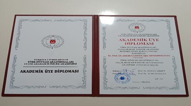Türk Dünyası Araşdırmaları Beynəlxalq Elmlər Akademiyasının üzvü seçilmişdir.