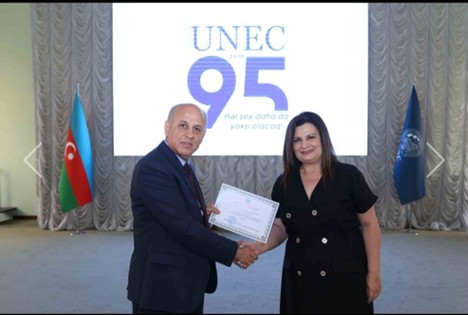Yüksək ixtisaslı mütəxəssislərin hazırlanmasındakı xidmətlərini və əmək funksiyalarını məsuliyyətlə yerinə yetirdiyini nəzərə alaraq, UNEC-in yaradılmasının 95 illik yubileyi münasibətilə UNEC-in "Fəxri Fərman"ı ilə təltif edilmişdir. (18 iyun 2025 il, əmr № 498/3/2025)